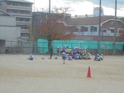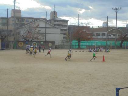 自分のペースを確かめるようにして,運動場のトラックを走りました。