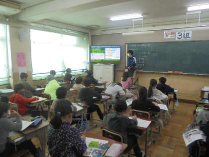 資料から輸送方法などについて考えを交流しました。これから日本の工業生産は輸送や貿易によってどのように支えられているのかについて,学習を進めます。
