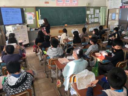 環境学習でゲストティーチャーの方に来ていただき,織物体験をしました。