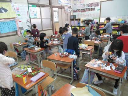 1年生 生活科「あさがおのリース作り」
