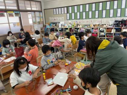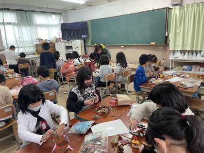 今年はさつまいもが豊作だったので,2年生はいもづるリースを作りました!