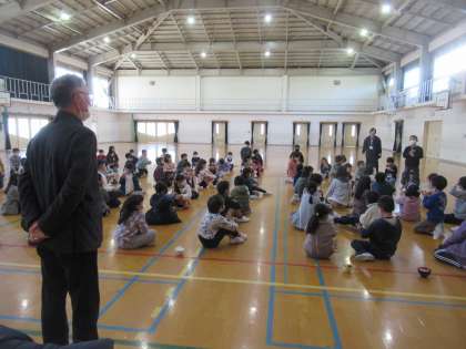 地域のお米の先生をむかえておにぎりパーティーをしました。地域の先生におにぎりを食べた感想を,どんどん発表しました。