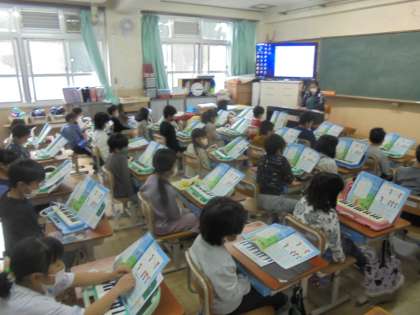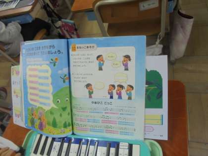 鍵盤ハーモニカをひいたり,「やまびこ ごっこ」の曲でよびかけあって歌ったりしました。