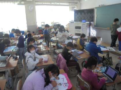 図画工作科で,GIGA端末を使って学習を行っています。