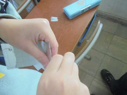 方眼用紙とアルミ箔を使って,電気のスイッチを作りました。