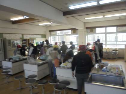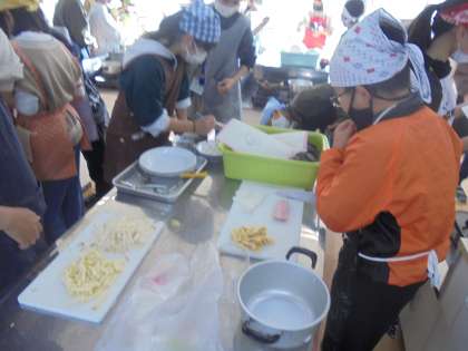 調理実習で,ベーコンポテトとみそ汁を作りました。