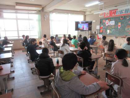 ZOOMで体育館でお話しされる先生の話を教室で聞きました。「冬休みのくらし」のプリントを見ながら聞いたり,テレビの先生の顔を見て聞いたりして,冬休みのくらしで気をつけることを確かめました。