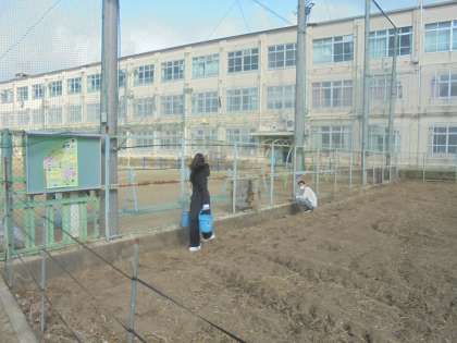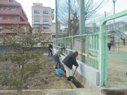 PTAの方々に来ていただき,運動場東側の溝を掃除していただきました。長年たまった土を少しずつ取り除くことができました。