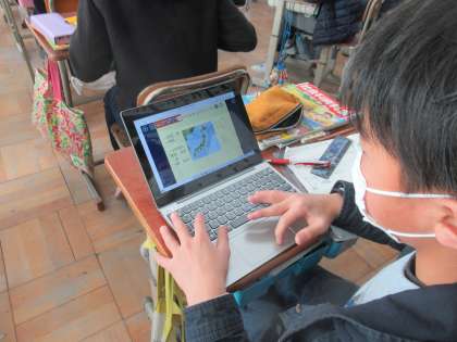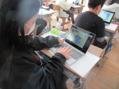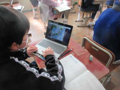 ロイロノートに地図を貼ったものを子どもたちに送りました。地形を基に,どこにどのような災害が起こるのか予想しました。