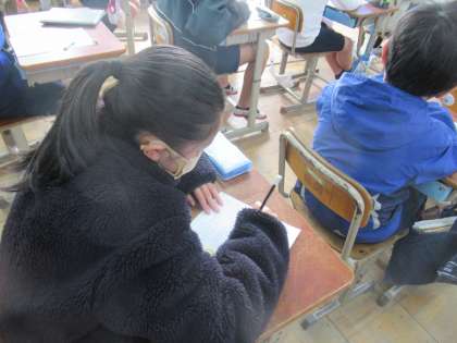 命について考える学習をしました。子どもたちはとても真剣に一生懸命考えました。ロイロノートに,初めと最後の考えを書き,考えがどのように変わったのか,自分で確かめられるようにしました。