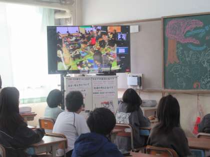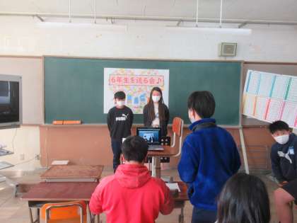 6年生をおくる会は,みんなで集まることができなかったので,ZOOMですべての教室と,すべての子どもたちをつなぐことに試みました。はじめに,児童会の司会のこどもたちによるオープニングです。そして,校長先生の手作りの6年生の子どもたちの思い出動画を,共有機能を使って,全教室に配信。