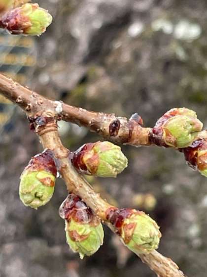 桜のつぼみも,だんだんと膨らんできて,茶色かった冬芽も,緑色になってきました。