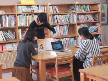 今年度最後の図書ボランティア読み聞かせ。まん延防止措置のもと,教室にはいかず,図書館からZOOMでお話を届けました。