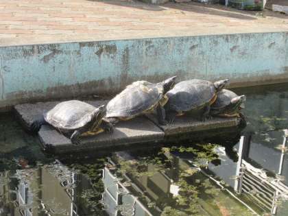 このごろ,長い間,池のブロックの下に隠れていたカメが,外に出てきて日向ぼっこをしています。その様子を子どもたちも楽しんでみています。ネイチャーランドの梅は,見頃です。