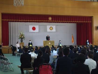 校庭には桜がしっかりと咲き,晴天の中,令和4年度 入学式が行われました。