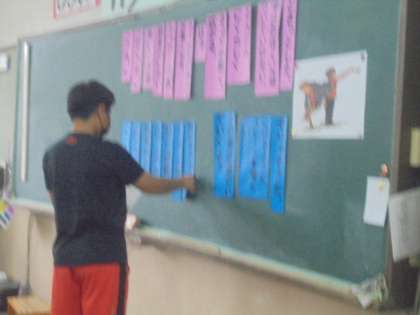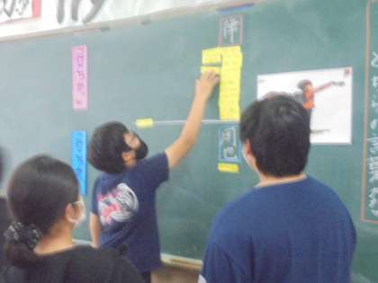 「帰り道」という物語文を学習しています。この物語は2人の登場人物のそれぞれの視点から書かれています。「行動描写」「会話文」「心内語」など叙述をたよりに,心情の変化を読み深めています。