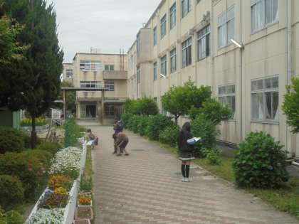 校内の草花・木を描き,着色しています。様子が伝わるように色合いを考えていました。