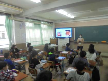 ALTの先生の紹介を英語で聞きました。好きなものなどを聞き取り,子どもたちは理解していました。