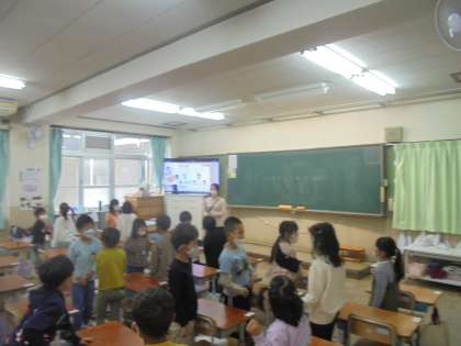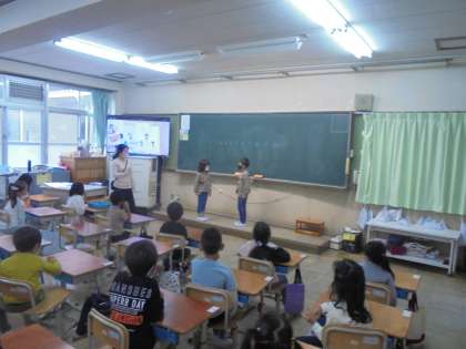 順番に10の数までを言えるかを楽しみながら学習しました。ペアになって,交互に数字を伝え合っていました。