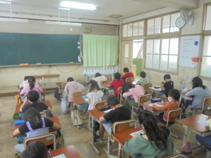 学習した漢字の小テストに集中して取り組んでいました。