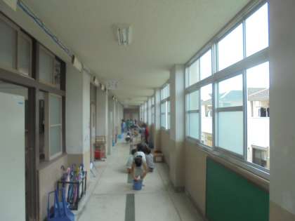 グループで協力しながら,それぞれの役割の掃除場所をきれいにしていました。