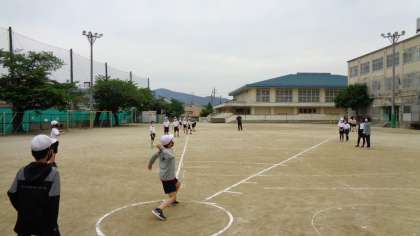 運動場ではソフトボール投げを行いました。思い切ってソフトボールを投げる姿に,時には「おお〜っ!」と歓声が上がる場面もありました。