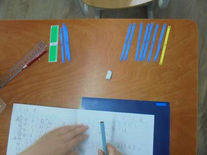数え棒を使って,21−8の計算をどのように考えればよいのかを学習しました。