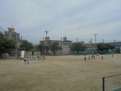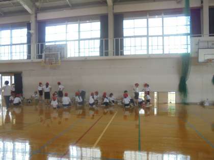 体力テストに取り組んでいます。運動場では,ソフトボール投げ,体育館では反復横跳びなどに取り組んでいます。