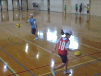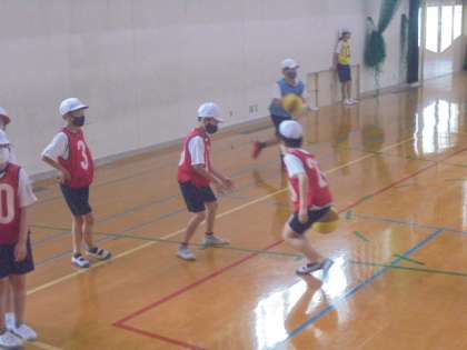 バスケットボールの学習が始まりました。まずはドリブルやパスなどの基本的な動きを練習しました。