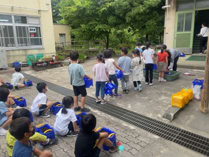 管理用務員さんにも手伝ってもらってアサガオを植えました。