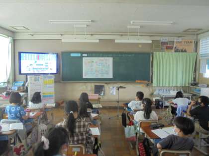 浄水場の様子がわかる映像を見たり,図を見たりして,水がどのようにして,飲む水に変わっていくのかを学習しました。映像を見てメモをしっかりととっていました。