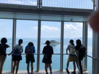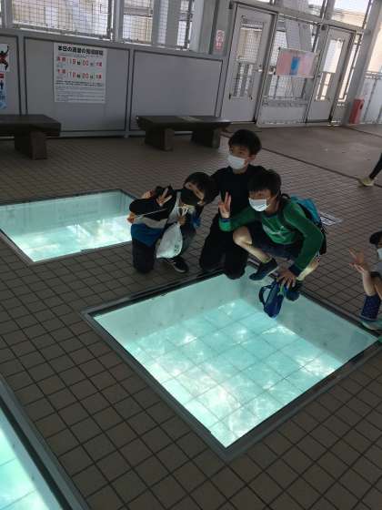 渦の道で,渦潮を見学しました。橋の上からも海をのぞくことができました。