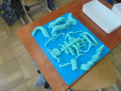 粘土で作ったものを,GIGA端末で写真を撮り,ロイロノートでみんなの作品が見れるようにしています。