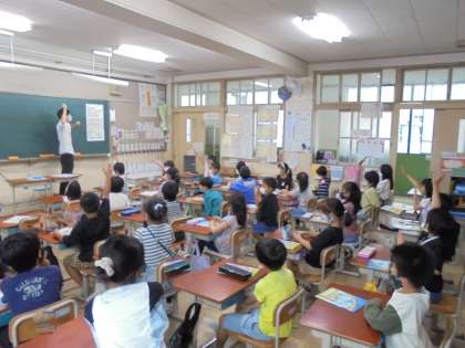 英語表現で名前をやり取りしたり,様子を伝え合ったりしました。