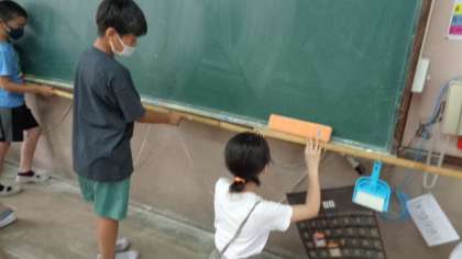 算数の体積の学習では,実際に1㎥の大きさを作ったり,教室の容積をはかったりしました。子どもたちは工夫して大きさを調べることができていました。