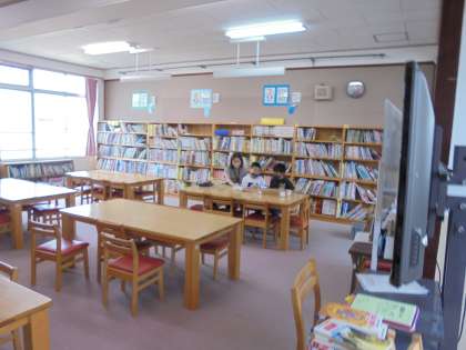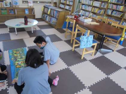 学校図書館で,大型絵本などを広げながら,読書に親しんでいます。