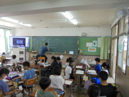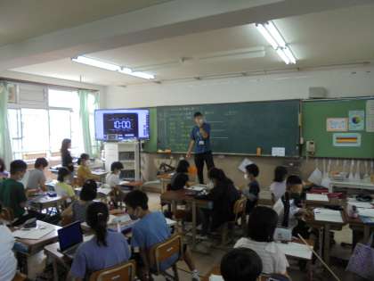 1mものさしで,いろいろなものを測り,体積・容積を調べ,交流しました。