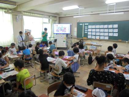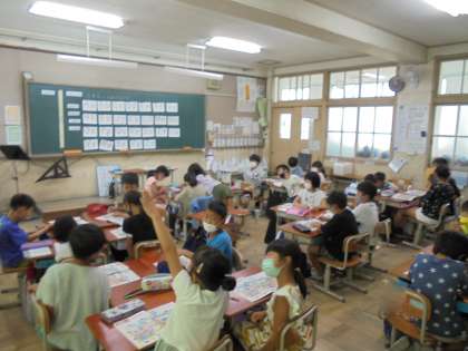 今日はALTと一緒に英語表現に慣れ親しみました。アルファベットを教材から頑張って子どもたちは探していました。