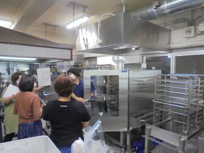 常磐野小学校にスチームコンベクションオーブンが入りました。2学期からは、スチームコンベクションオーブンをつかっての給食があります。楽しみにしておいてほしいと思います。