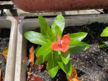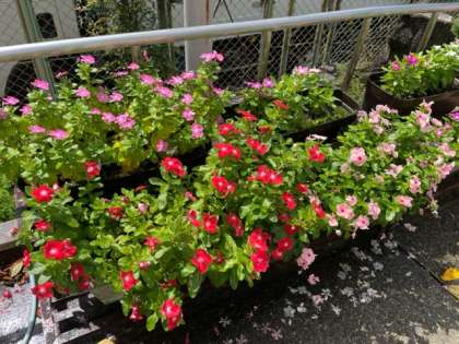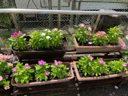 地域の方から、たくさんの日々草をいただきました。たくさんの花が咲き、その中には珍しいオレンジ色の花を咲かせている一輪の日々草がありました。