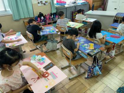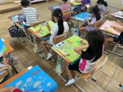 絵本の読み聞かせを聞いて,想像してお話を絵にしていきます。