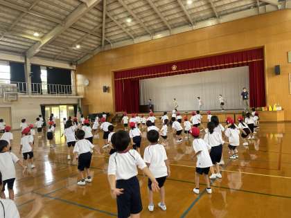 有志の6年生が夏休みに1年生のためにダンスを覚えてくれました。