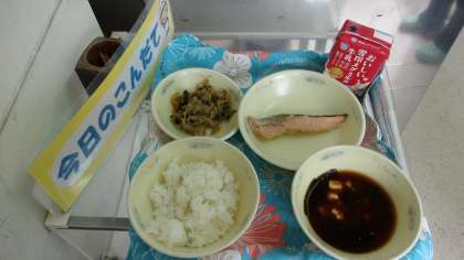 今日の献立は,スチコン献立「さけの塩こうじ焼き」でした。
