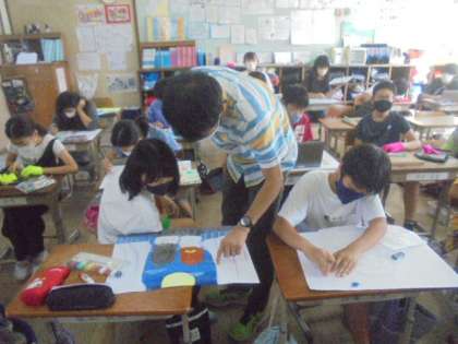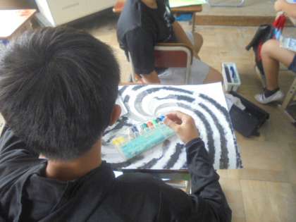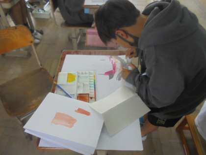 6年生は,4つのお話から自分が興味をもったお話を1つ選び,絵に表しています。いよいよ仕上げの段階に入ってきたようです。