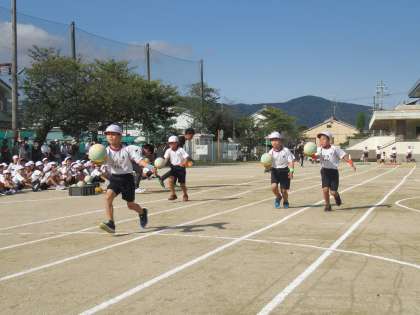 障害物競走!前転,けんけんぱ,ボール運び。