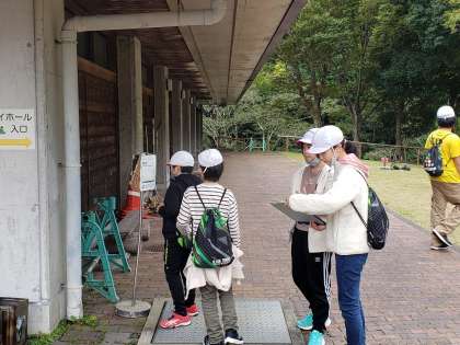 スコアオリエンテーリングで、グループで協力して活動しているようです。