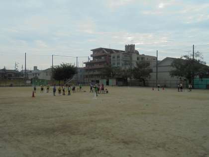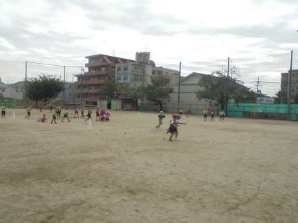バトンパスを工夫しながら、リレーの学習をしています。声をかけ合って、高め合っています。