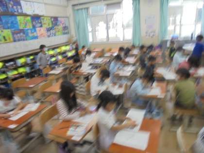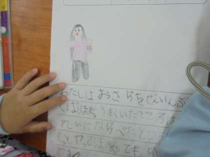 にこにこ大作戦に取り組んで、ワークシートに書きました。みんなのにこにこを思い浮かべて書いていました。