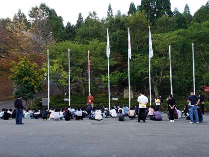 朝の集いでは、先生による頭を使った体操を楽しみました。