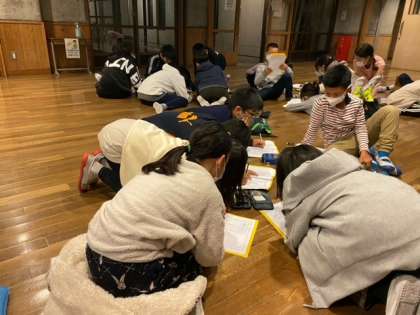 昨日の夜の振り返り、キャンプファイヤーの様子です。